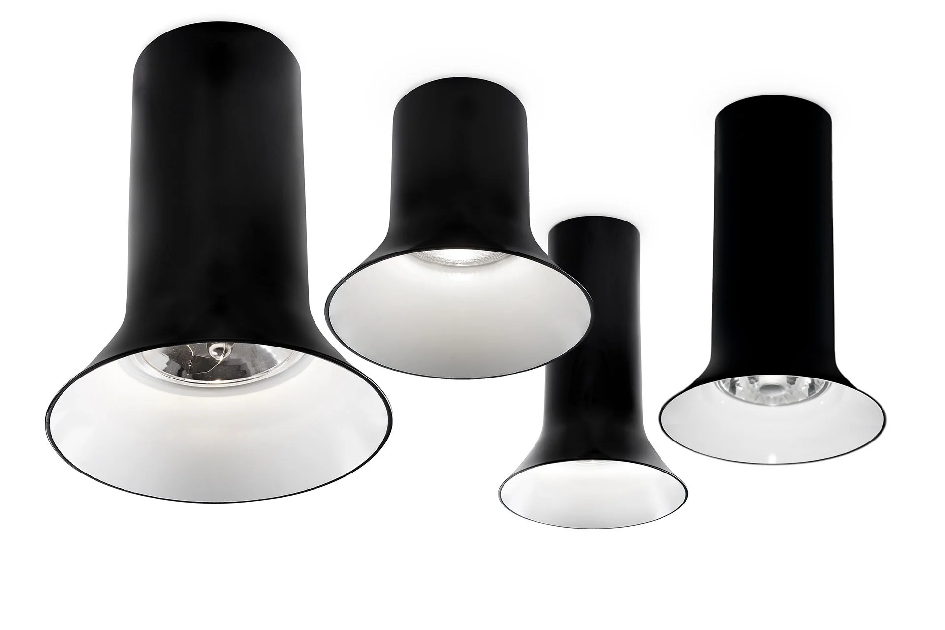 Lamps from the SAX family represent an alternative to all surface-mounted downlighters. Its 26 different variations cover the entire spectrum of lighting-design requirements. The choice of different light sources means that this model also has a wide range of applications. Following the latest trends in energy savings, it offers a choice of 5 different light sources with 7 different variations. From 12V or 230V spots for mood lighting to fluorescent lamps for general lighting.